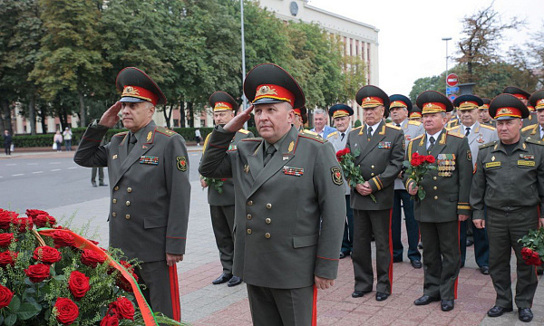 Перед торжественным собранием Государственный секретарь Совета Безопасности Республики Беларусь генерал-лейтенант Александр Вольфович, Министр обороны Беларуси генерал-лейтенант Виктор Хренин, члены коллегии Министерства обороны, действующие офицеры и ветераны Вооруженных Сил возложили цветы к подножию памятника советскому танку Т-34.